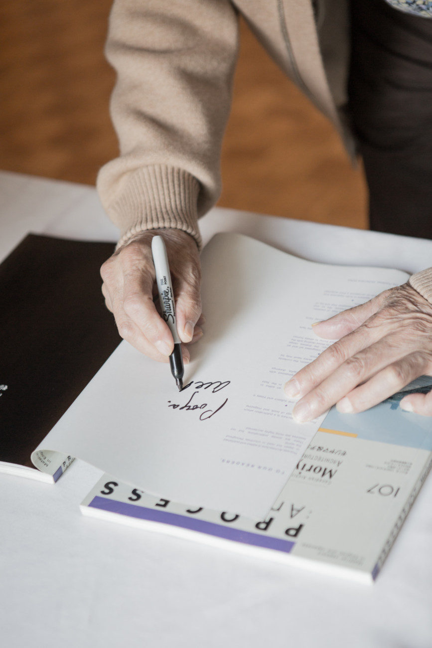 Raymond Moriyama inaugurated the exhibition with a tour of the Noor Cultural Centre at 123 Wynford Drive, which was originally home to the Japanese Canadian Cultural Centre. Friends and family of the architectural community later gathered at the new Japanese Canadian Cultural Centre where the exhibition formally opened and celebrated Raymond’s upcoming 90th birthday.