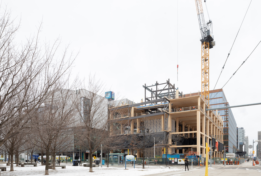 Dave Leblanc of the Globe and Mail gives his account of how Limberlost Place, our ten-storey, mass timber, highly sustainable project currently under construction at George Brown College’s waterfront campus, is shifting the tides of standard building practices in Canada. Pushing boundaries and exceeding expectations – construction and fabrication techniques, structural design, zoning, and efficiency metrics, to name a few – Limberlost Place is rising to meet the Toronto skyline, showing a new face of sustainable architecture.