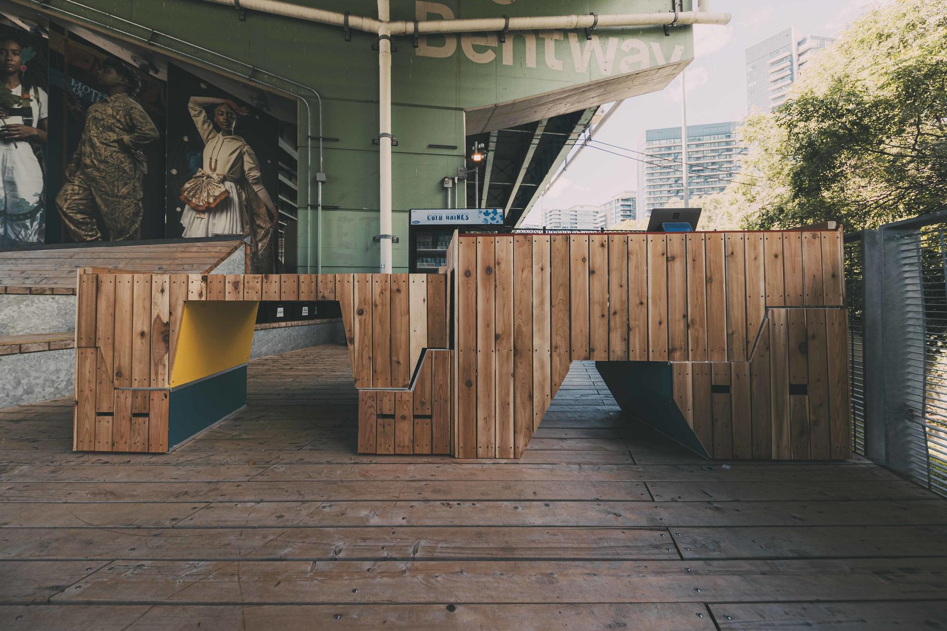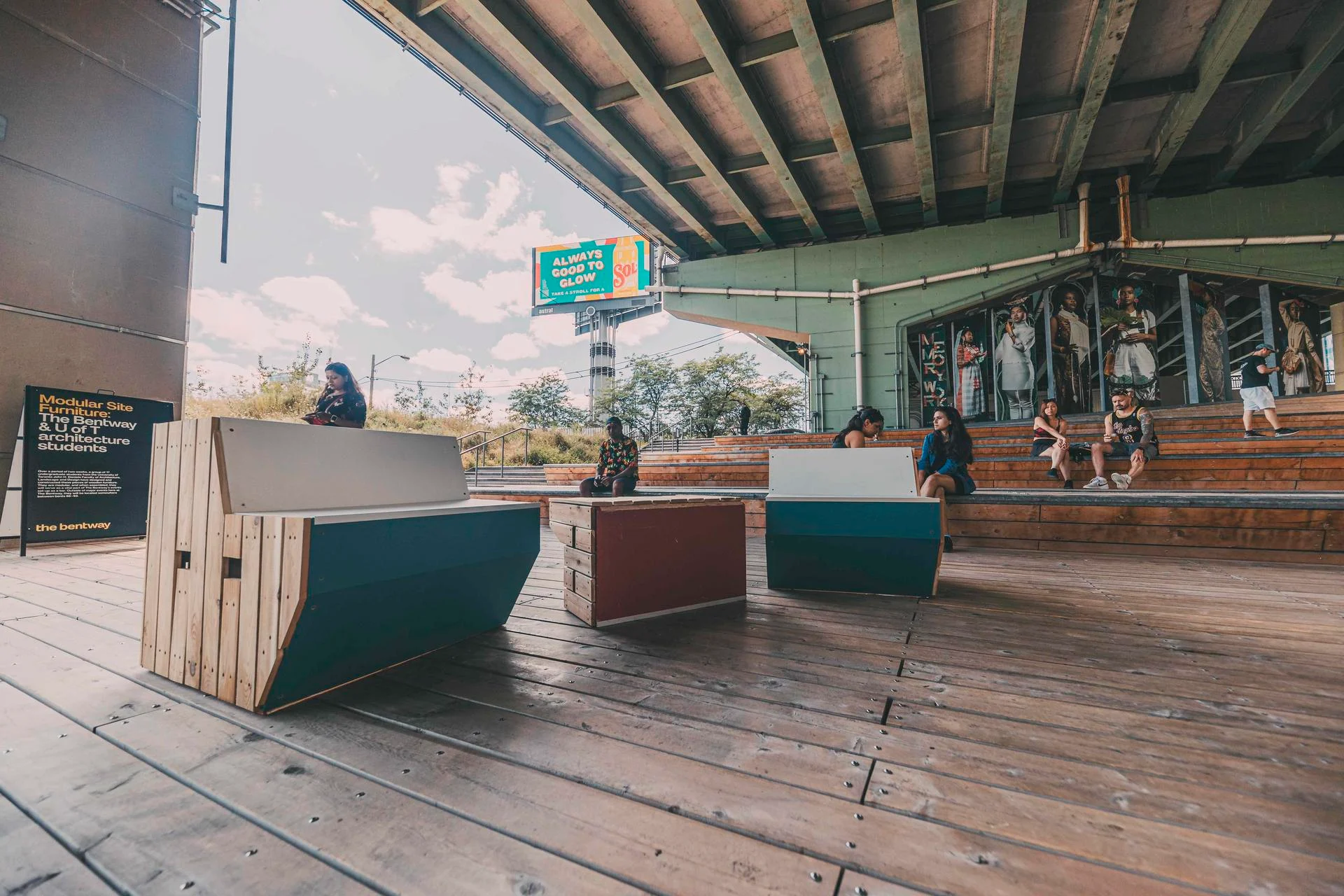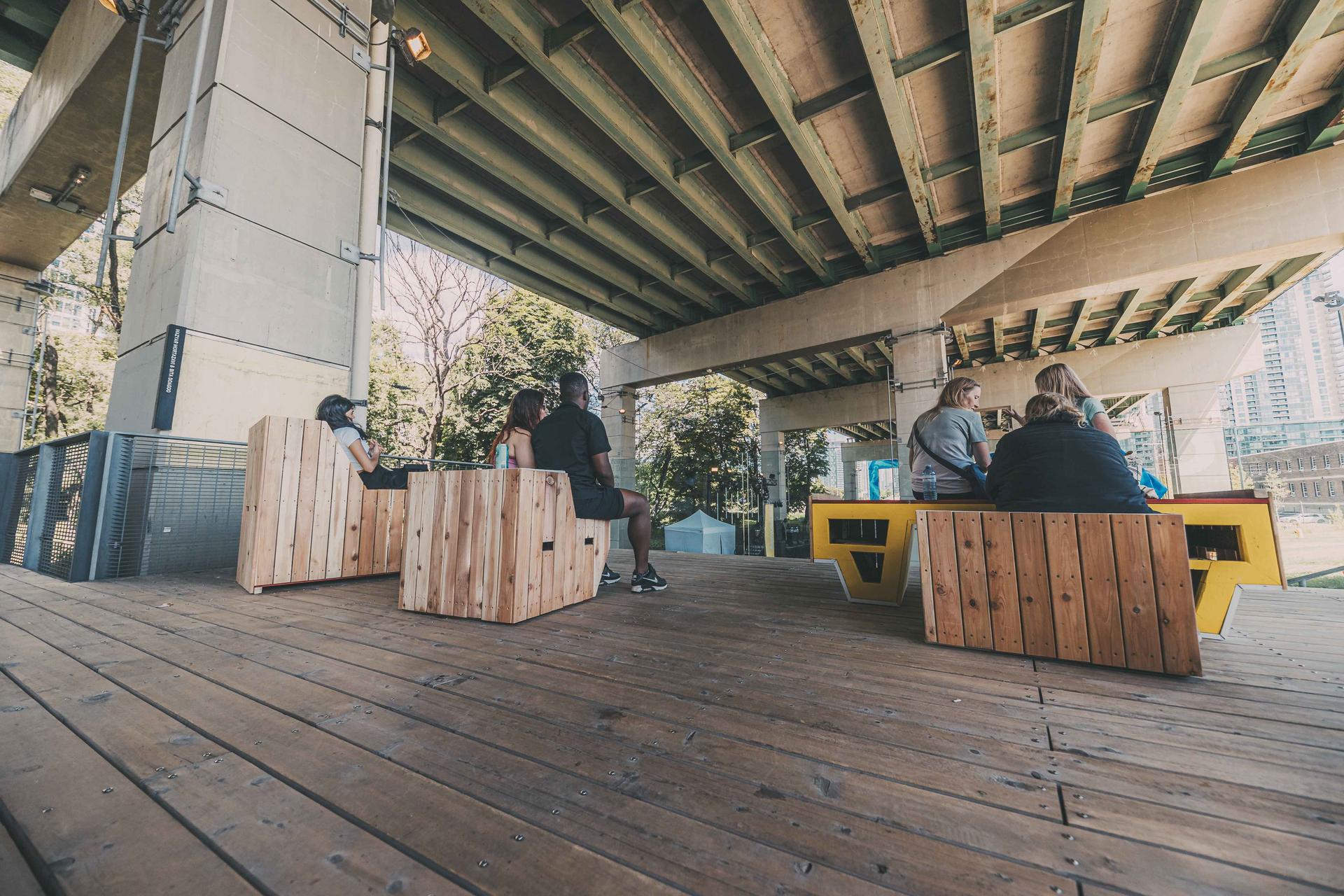Hats off to MTA Architect, Clint Langevin, who led 17 undergraduate students from University of Toronto John H. Daniels Faculty of Architecture, Landscape and Design in a design-build workshop collaboration with The Bentway. The resulting project, completed over the summer of 2023, is entitled “Flippin’ Chill’” and is a set of modular furniture pieces that can be arranged for lounging, playing, or events.