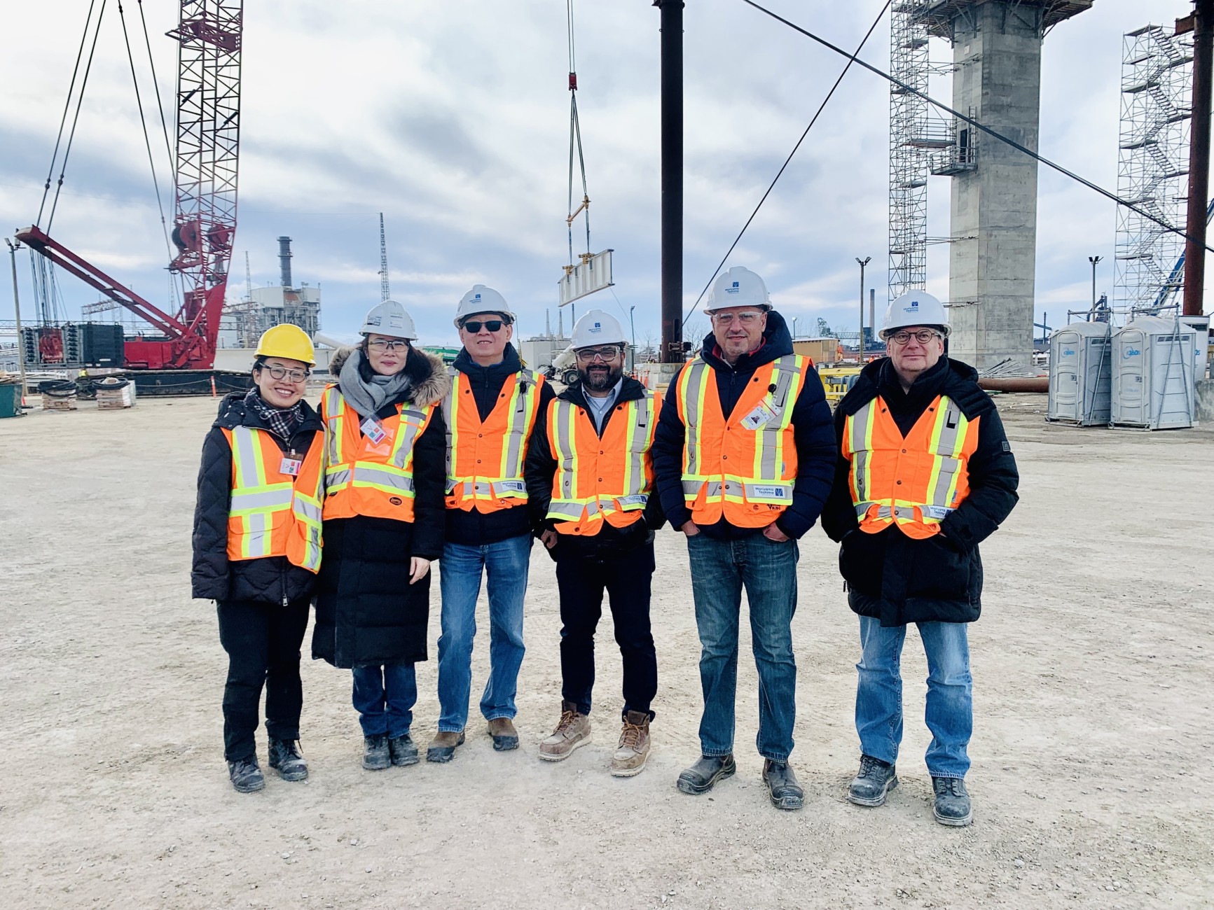 MTA team members Brian Rudy, Gene Ascenzi, Janice Chan, George Z. Meng, Jay Patel, and Sarah Xiaoyi Ni visited the construction site of the Gordie Howe International Bridge project in Windsor, Ontario, for which our firm is the Architect of Record for the Canadian Port of Entry facilities. The design seeks to provide a welcoming entry into our great nation, boosting civic pride through an admired landmark and new gateway symbol within the wider urban and regional context.