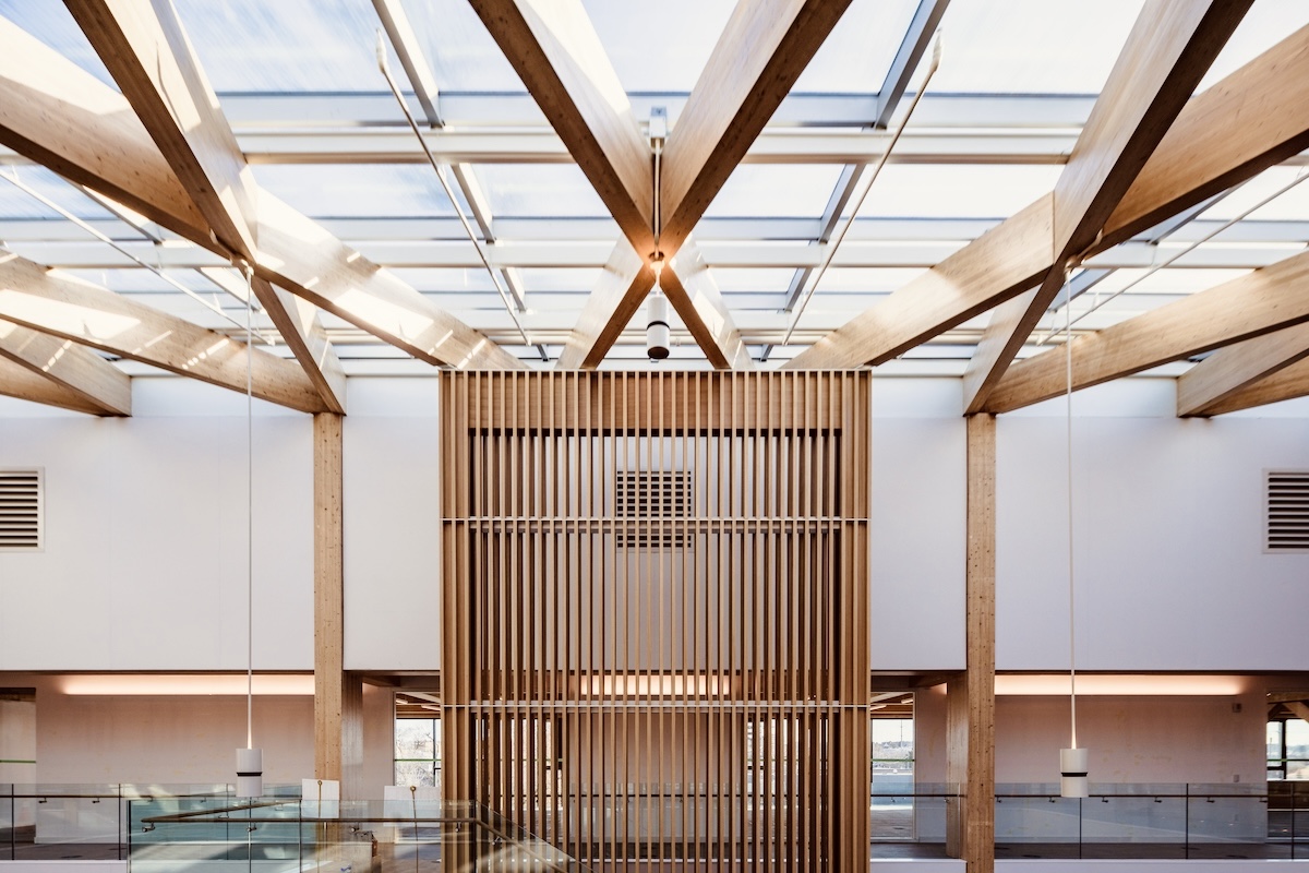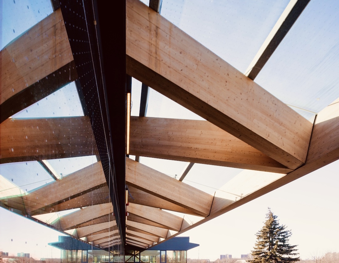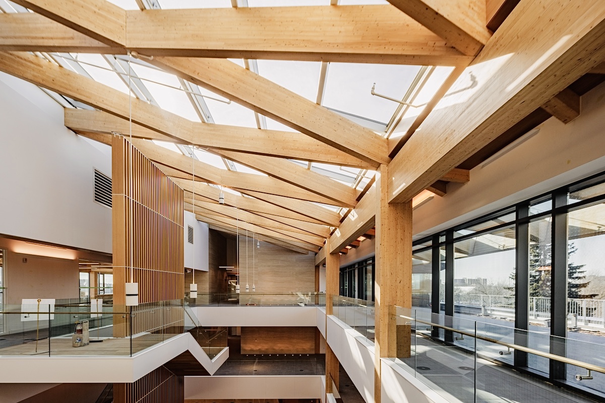 Pictured here is the Ontario Secondary School Teachers’ Federation (OSSTF) Headquarters, a mass timber project of ours nearing completion in Toronto. Its structure is composed of nationally sourced timber materials, and is a leading example of sustainable design due to its low levels of embodied carbon throughout the whole building lifecycle.