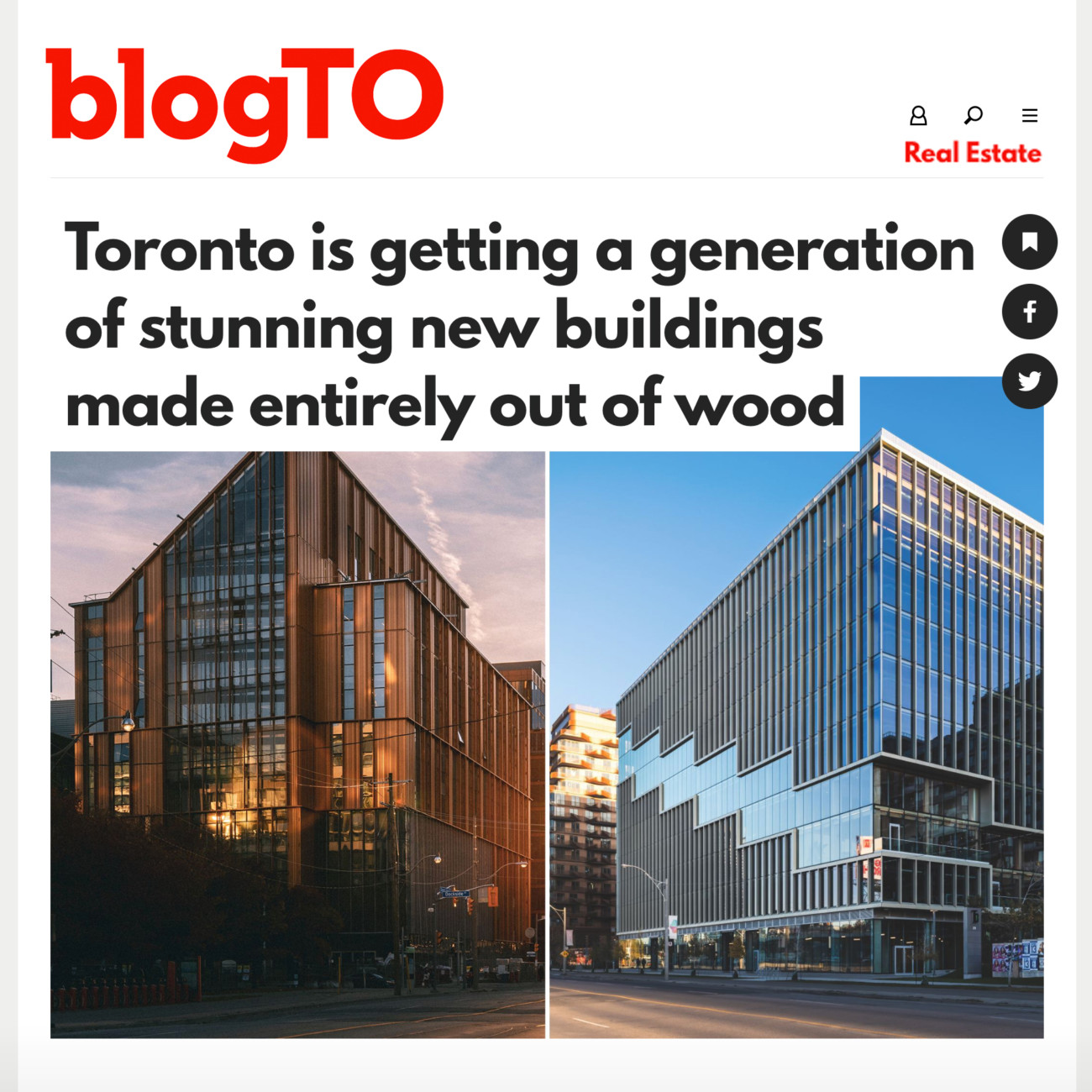 “Recent changes to the Ontario Building Code have allowed developers to utilize this innovative building medium to push the boundaries of sustainable construction, resulting in a wave of new large-scale wood-framed structures in Toronto. A pair of mass-timber buildings now stand as showpieces in one of Toronto’s newest neighbourhoods, and is just an appetizer for even more ambitious wood towers in the pipeline.”