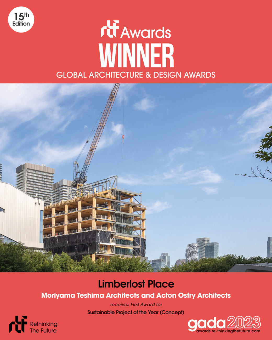 We are excited to announce that Limberlost Place, our highly sustainable, 10-storey, mass timber project designed with Acton Ostry Architects Inc., has earned the First Award for Sustainable Project of the Year (Concept) in this year’s Global Design & Architecture Design Awards (a program by Rethinking The Future)!