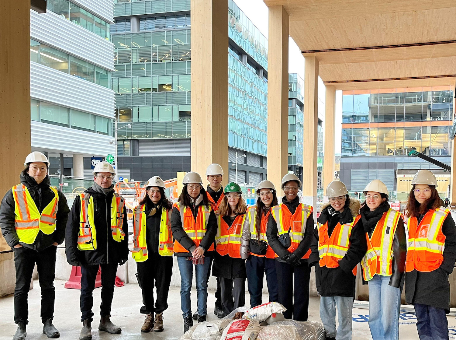 Our team had an excellent time leading University of Toronto students on a tour of Limberlost Place, the ten-storey mass timber institutional facility currently under construction at George Brown College’s waterfront campus. This guided tour showed the undergraduate students of the University of Toronto – John H. Daniels Faculty of Architecture, Landscape, and Design through the cascading atrium that will become the facility’s Learning Landscape. It was a great opportunity to expose their class to the engineering innovations and sustainability metrics achievable through mass timber construction.