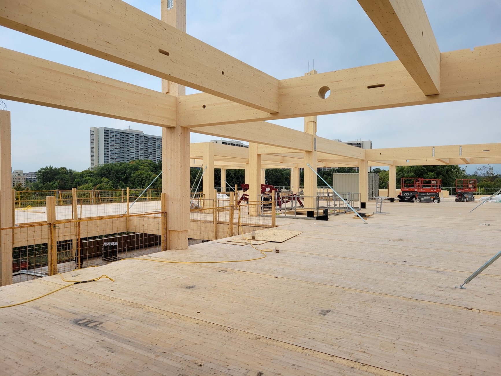 The MTA team recently toured the new Ontario Secondary Schools Teachers’ Federation Headquarters building site in Toronto to witness the third storey’s structural members being placed. The construction practices seen in assembling this prefabricated mass timber structure are highly efficient, and as a result, fast. Stay tuned for the next milestone to be achieved shortly!