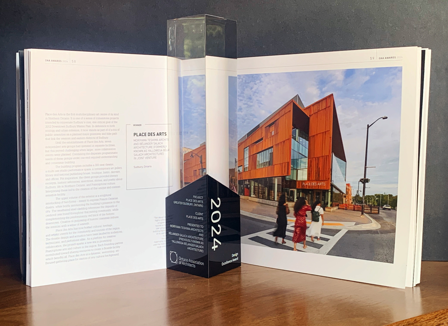 The team from Moriyama Teshima Architects and Bélanger Salach Architecture (previously: Yallowega Bélanger Salach Architecture) attended the Ontario Association of Architects (OAA) Annual Conference in Niagara to accept the prestigious Design Excellence Award for winning project, Place des Arts in Sudbury!