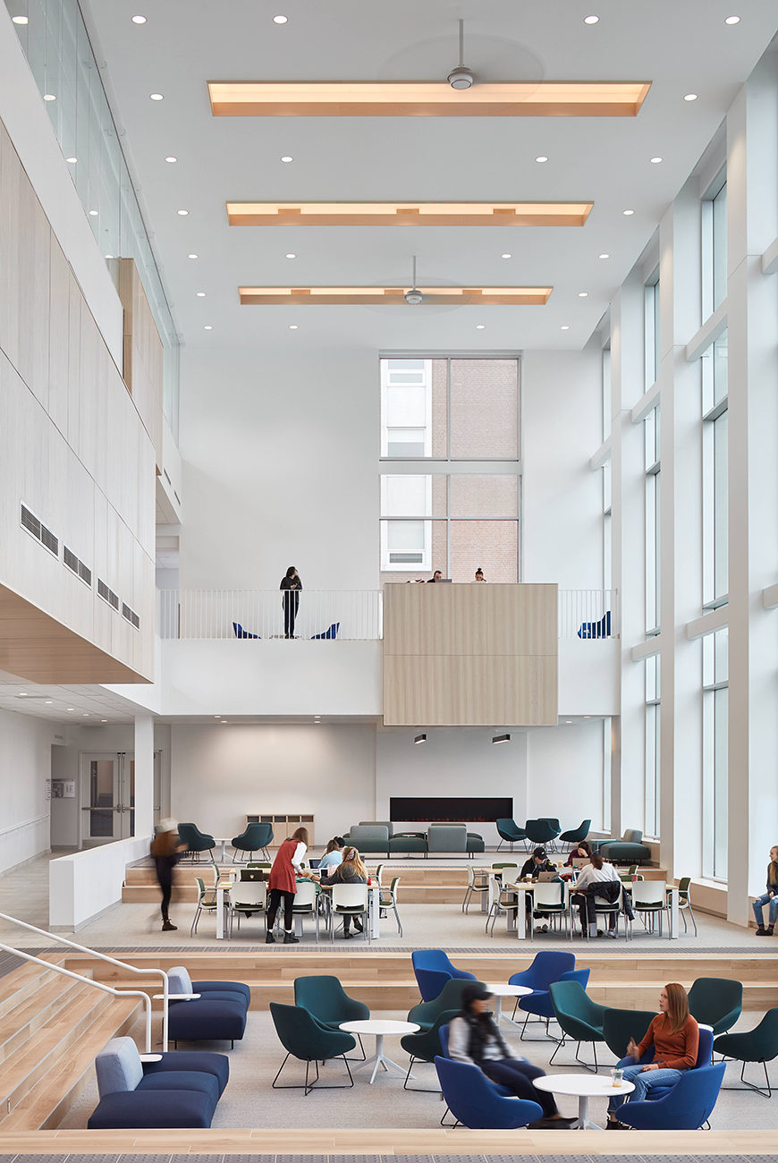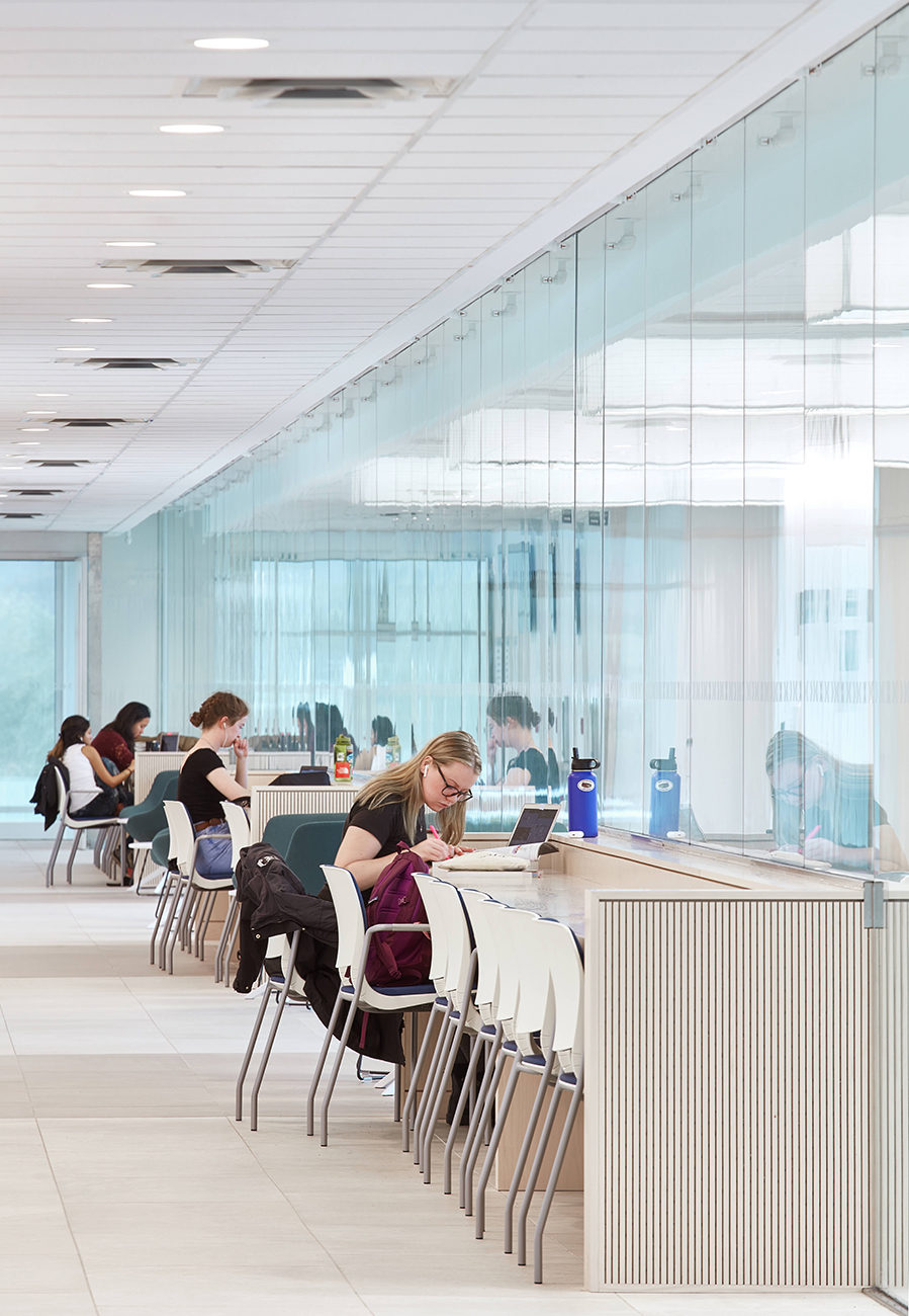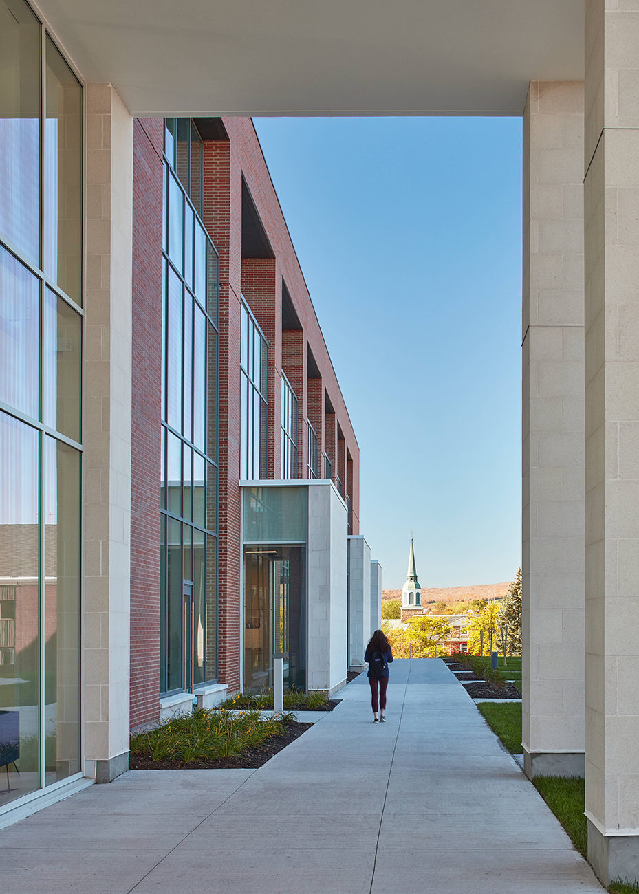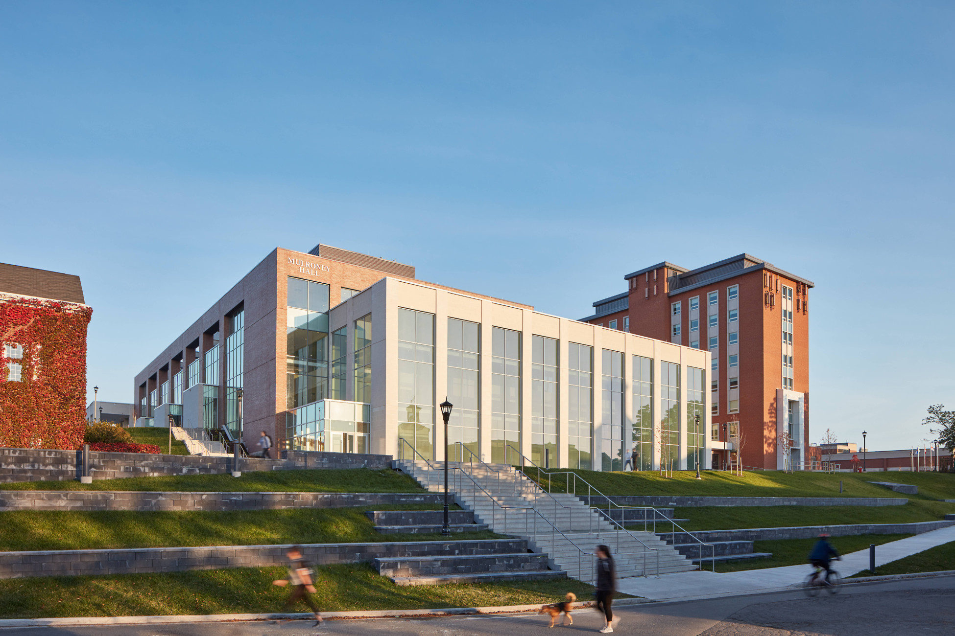 The new Mulroney Hall is a dynamic nexus of academic and social life on the highly picturesque St FX Campus. The design aspires to make Mulroney Hall a new, distinguished presence that announces itself as an iconic building on a highly visible hillside site. Endowed with wonderful elevated vantage points across the Lower Campus, the Western edge of the building is assigned the most prominent public/social programmed space in the Institute, that of the Forum. As a major new student destination on Campus, the Forum will become a Campus Living Room linking the Upper and Lower Campus zones.