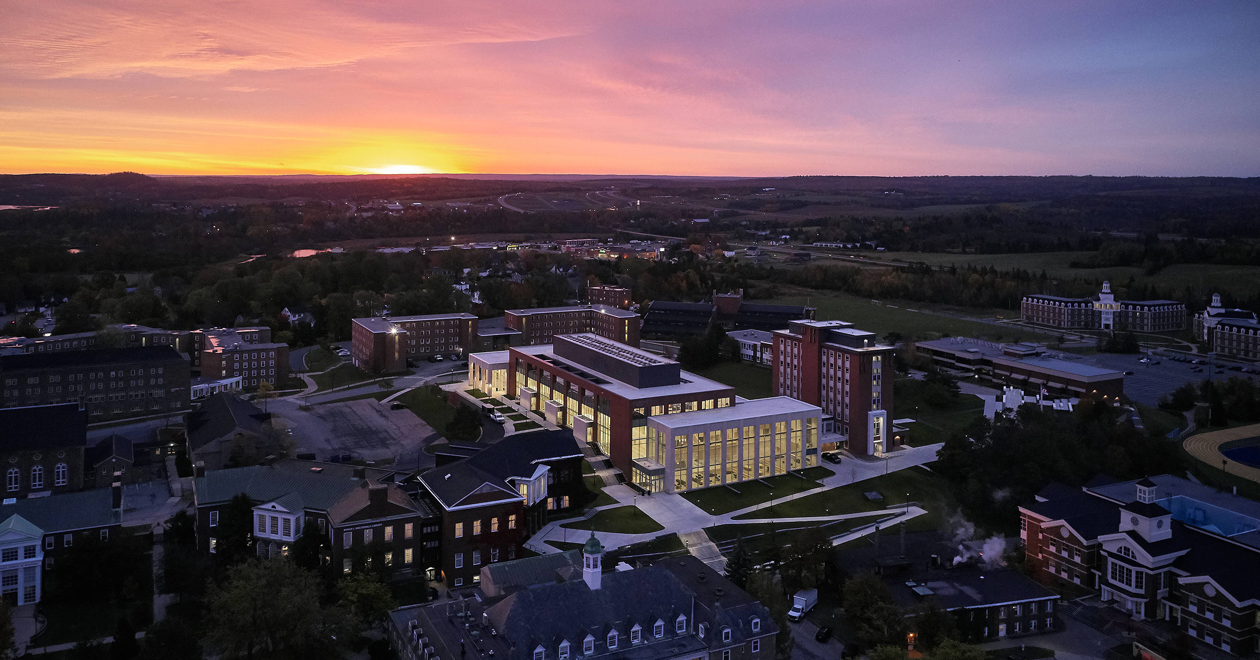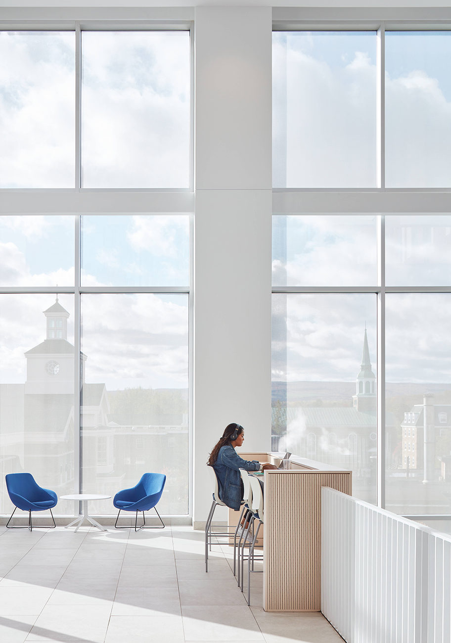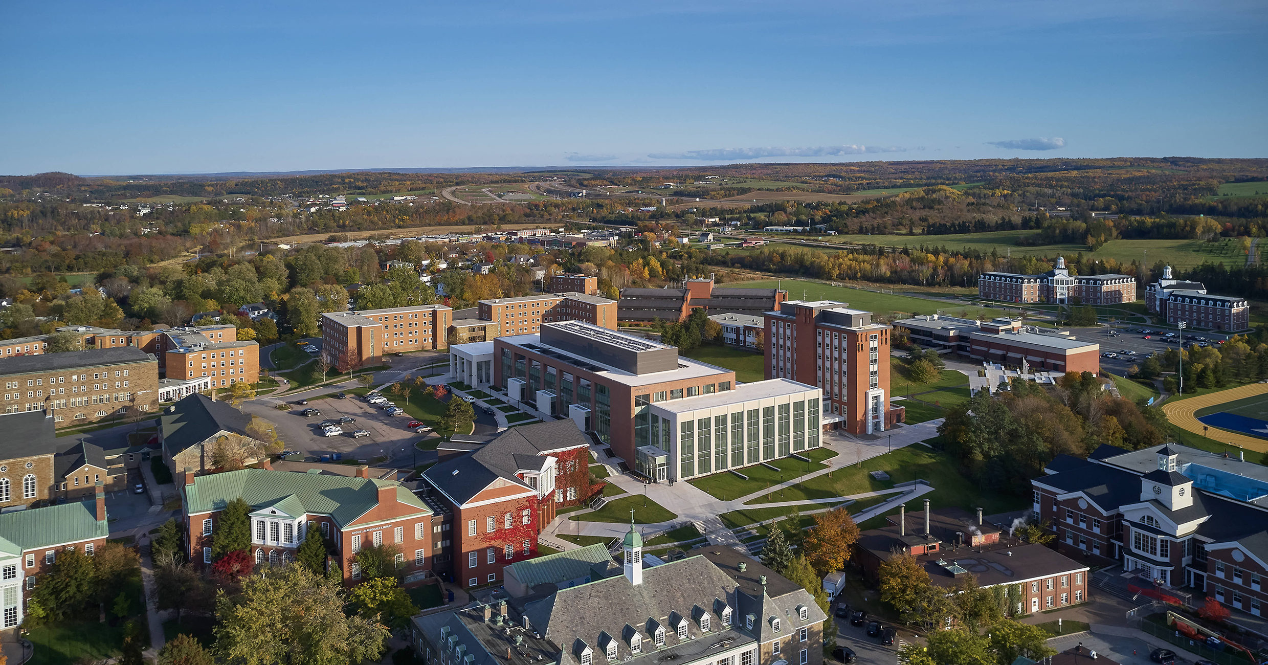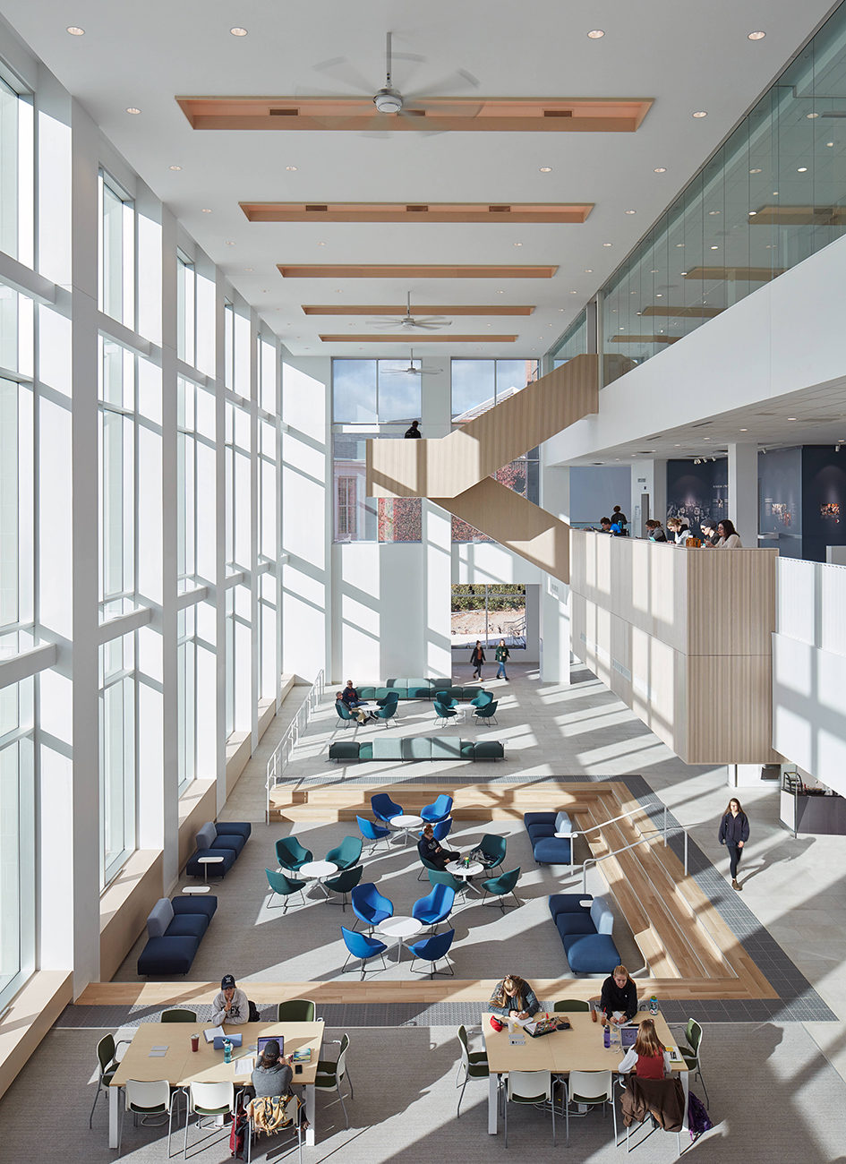 The new Mulroney Hall is a dynamic nexus of academic and social life on the highly picturesque St FX Campus. The design aspires to make Mulroney Hall a new, distinguished presence that announces itself as an iconic building on a highly visible hillside site. Endowed with wonderful elevated vantage points across the Lower Campus, the Western edge of the building is assigned the most prominent public/social programmed space in the Institute, that of the Forum. As a major new student destination on Campus, the Forum will become a Campus Living Room linking the Upper and Lower Campus zones.