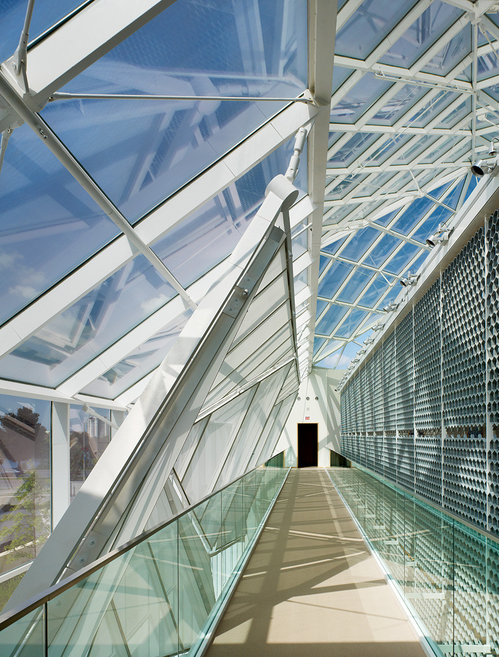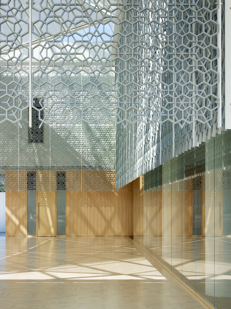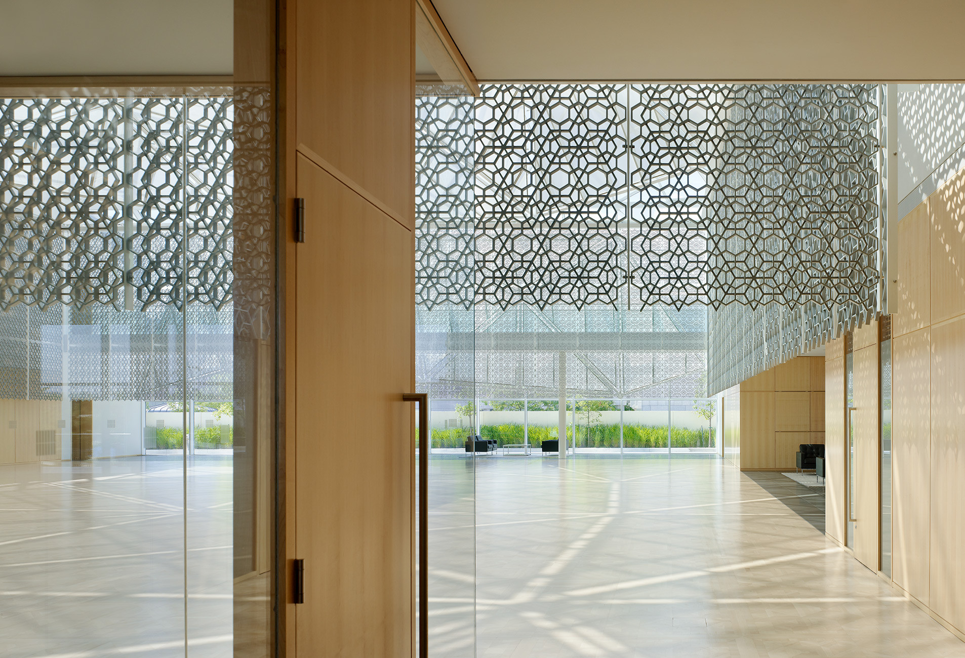 A stunning hexagon-patterned Jali screen in the Atrium creates an ever-changing interplay of light and shadow, while the floor of Canadian maple adds visual warmth and a domestic note of welcome.