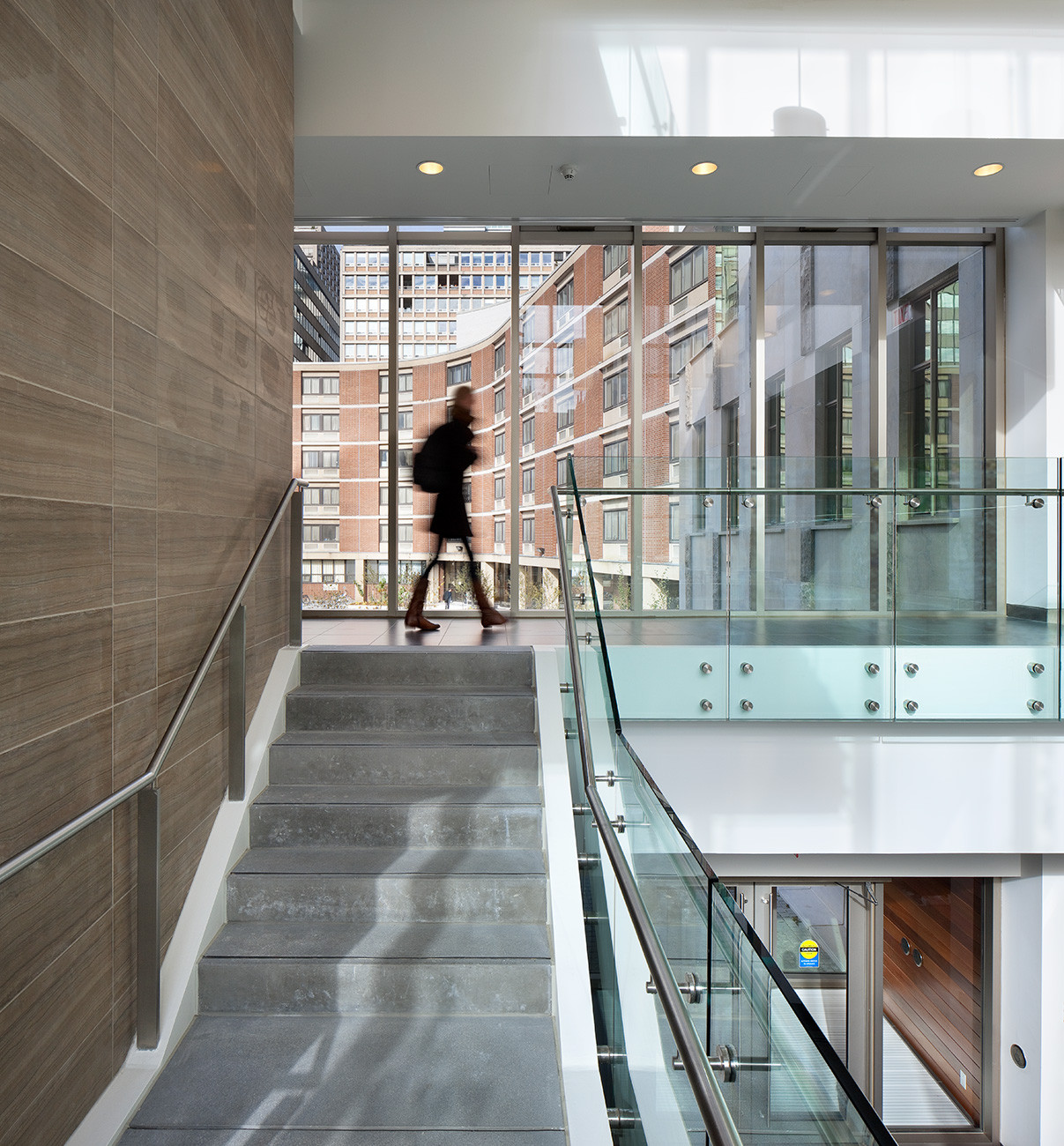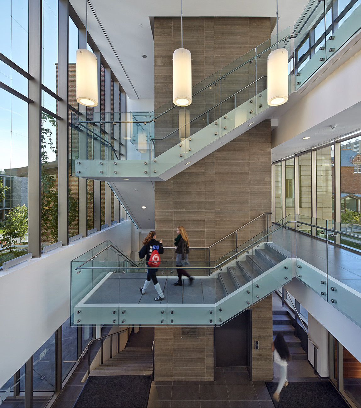 The porous, welcoming and animated ground plane reinforces pedestrian routes through the campus, and lures students into the building’s exceptional