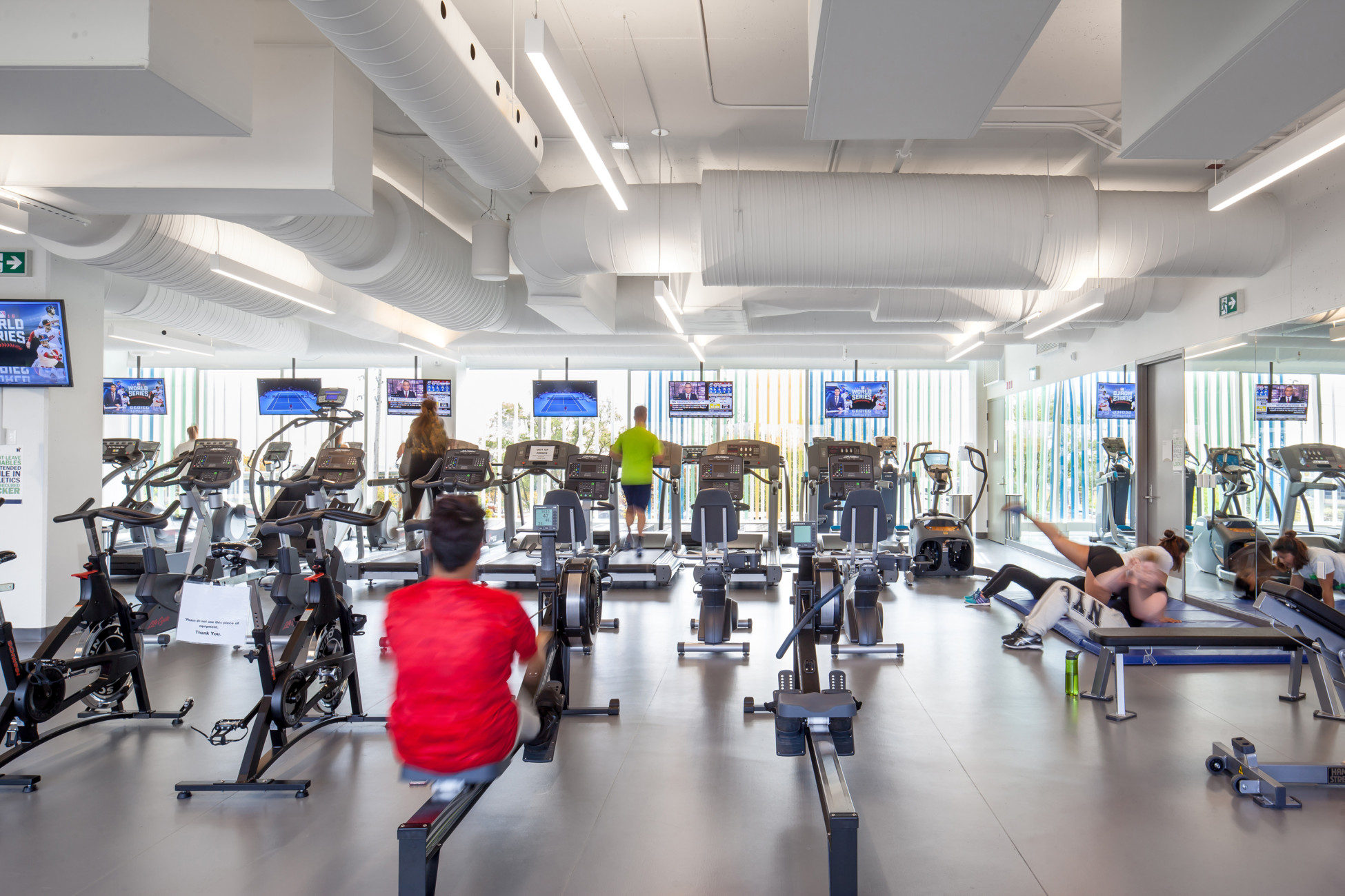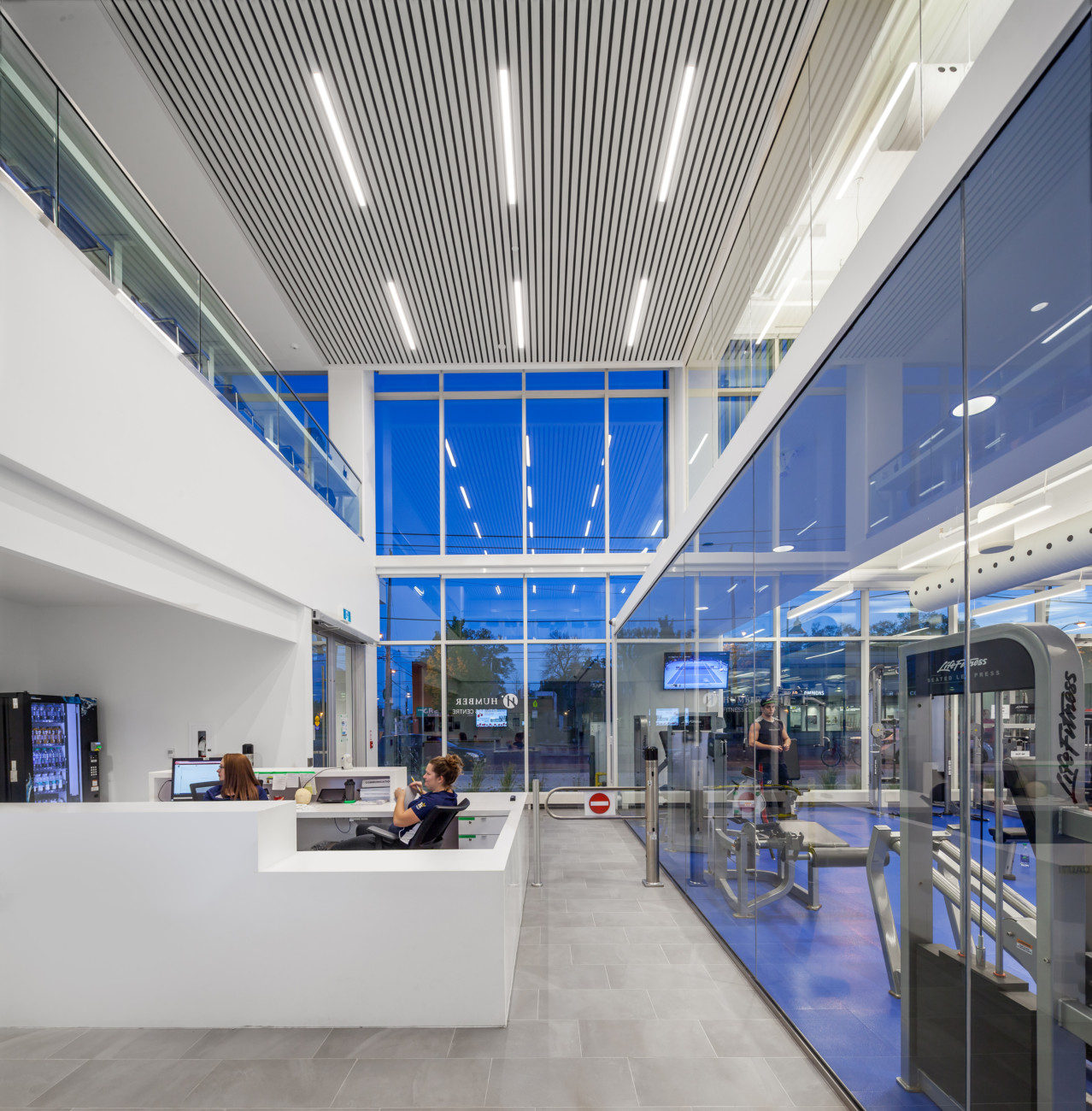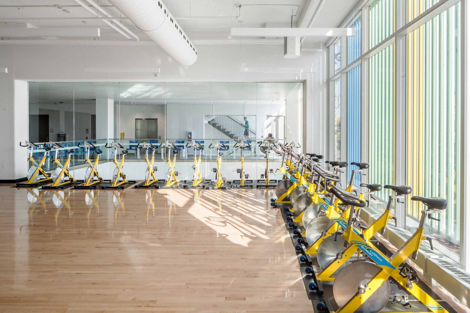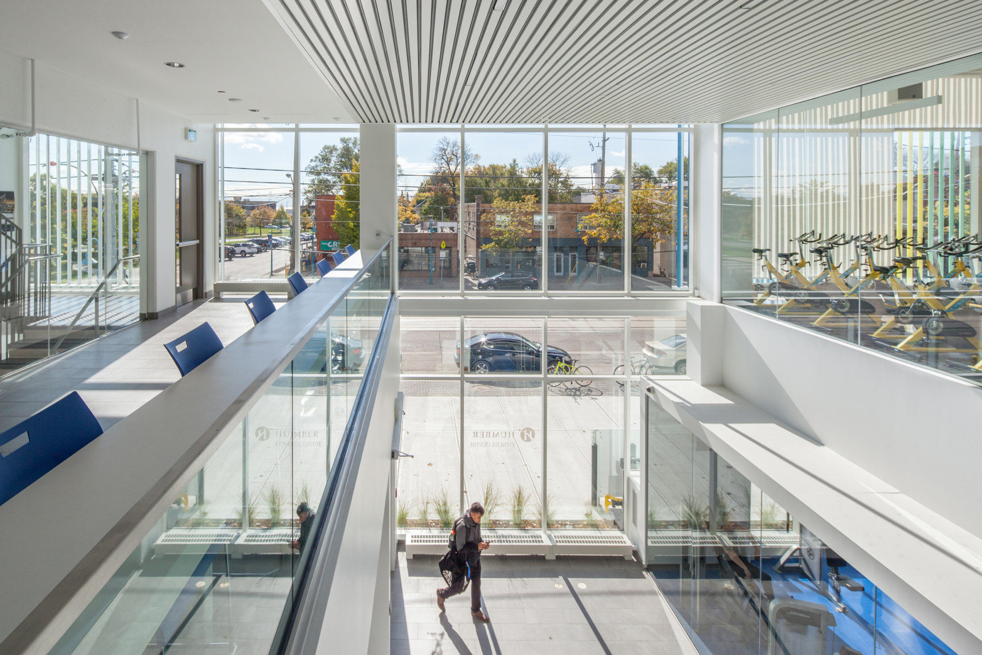 Designed to achieve LEED Silver certification, the Athletic Centre supports healthy lifestyles within the Humber College community, providing flexible, adaptable and resilient facilities for recreation, health and wellness. Interior spaces include a weight room, aerobics and dance studios, and cardio exercise rooms on three floors. Visual transparency, clear sightlines and interconnected spaces showcase the activities within, promote social interaction, increase the level of energy and excitement and encourage users to partake of the Athletic Centre’s facilities and programs.