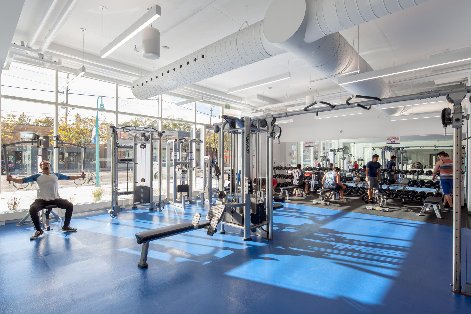 The feature stair is brought to the front façade, animating the street and creating vertical movement along the south elevation. Active programs are consolidated to the west side of the building, so as to provide controlled exposure: those who want to be on display along the southern elevation can do so, but those who want privacy, can work out deeper into the building without being seen from the outside.