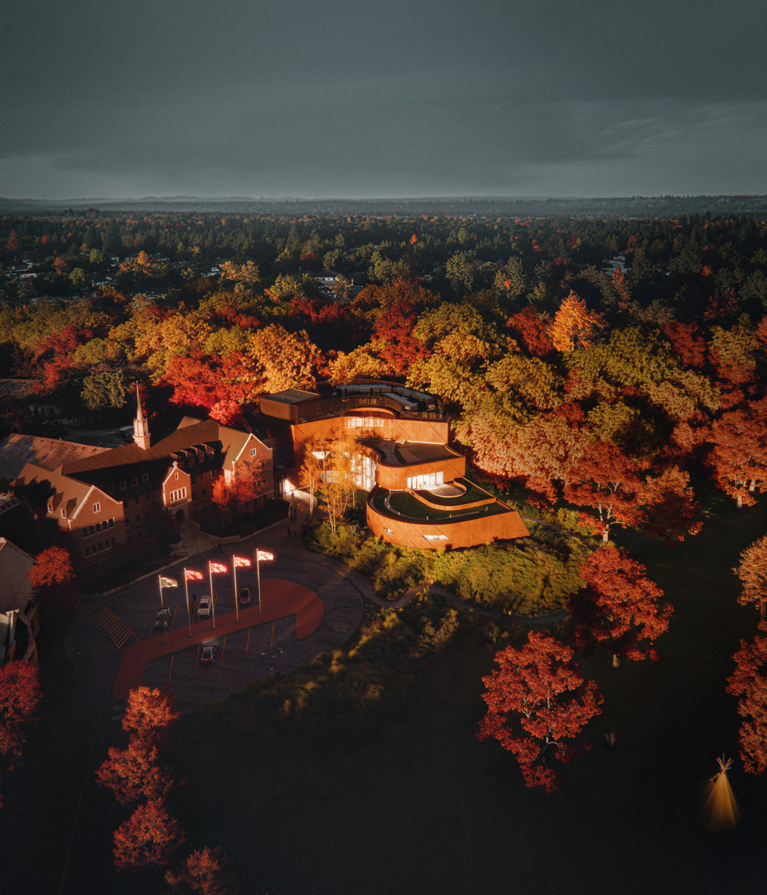 At the gateway to campus is Shingwauk Hall, a former residential school that operated between 1875 and 1970. More than 1,000 Indigenous children attended the school, separating them from their families, cultures, languages, and traditions. Since the school’s official closure, the Children of Shingwauk Alumni Association (CSAA) have been working with Algoma University to teach the truth about the residential school system’s history in Canada and work toward healing and reconciliation through the vision of a cross-cultural learning centre – a facility of healing, cultural preservation, dialogue, and transformation. The new Cultural Centre’s architectural expression comes from the land, rising up through three paths that represent the past, present, and future, and standing above the residential school. This lifted position provides visitors a stronger, more dominant, and dignified vantage point from which to look upon the site’s history.