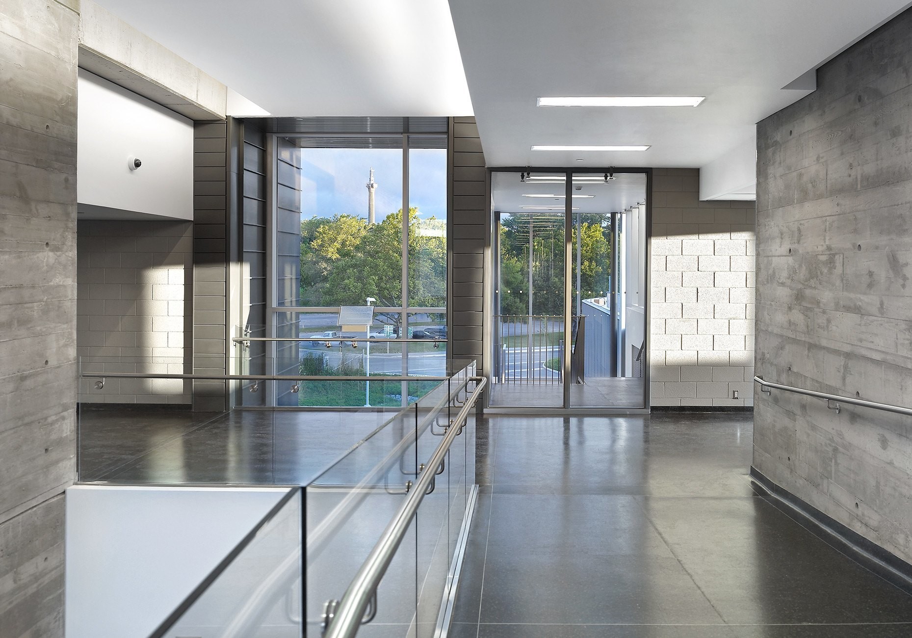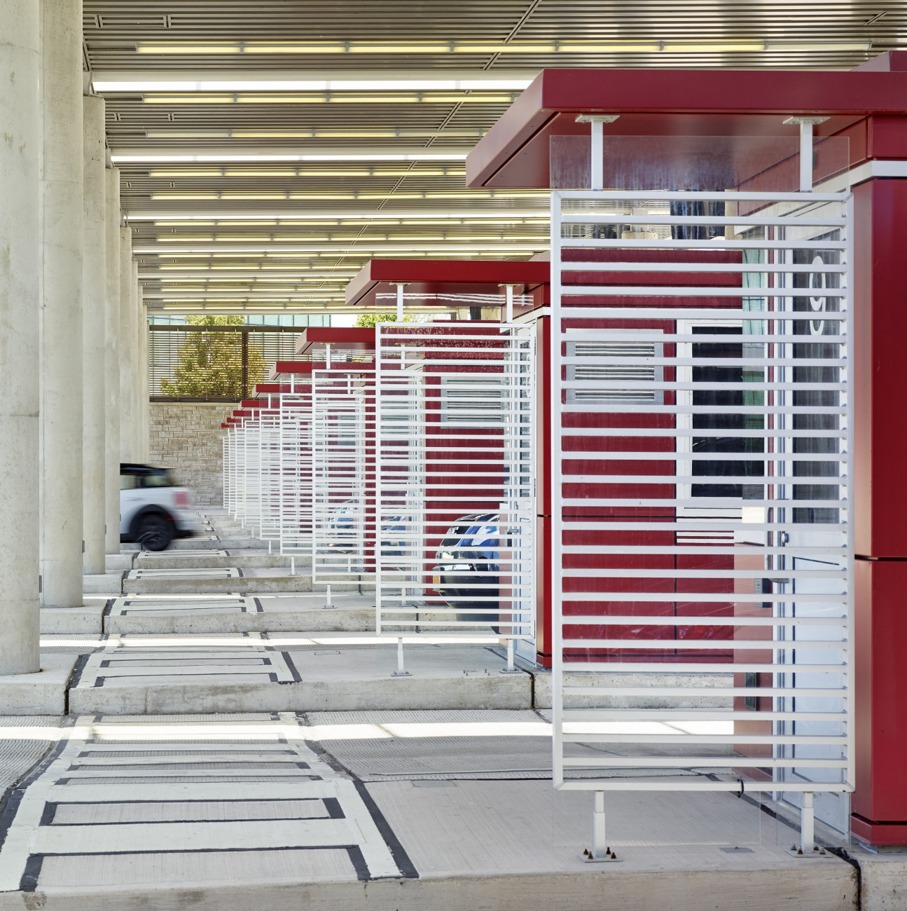 Phase 1 included the replacement of the toll collection building, canopy, and maintenance facilities, as well as a new commercial processing canopy. Phase 2 consisted of administrative offices and inspection services for commercial, bus and general traffic for the Canada Border Services Agency and the Food Inspection Agency. The phased redevelopment introduced improvements to plaza infrastructure, toll collection stations, covered traffic inspection area and bus drop off area, enclosed pedestrian bridges and covered walkways, security fence, parking garage and public plaza.