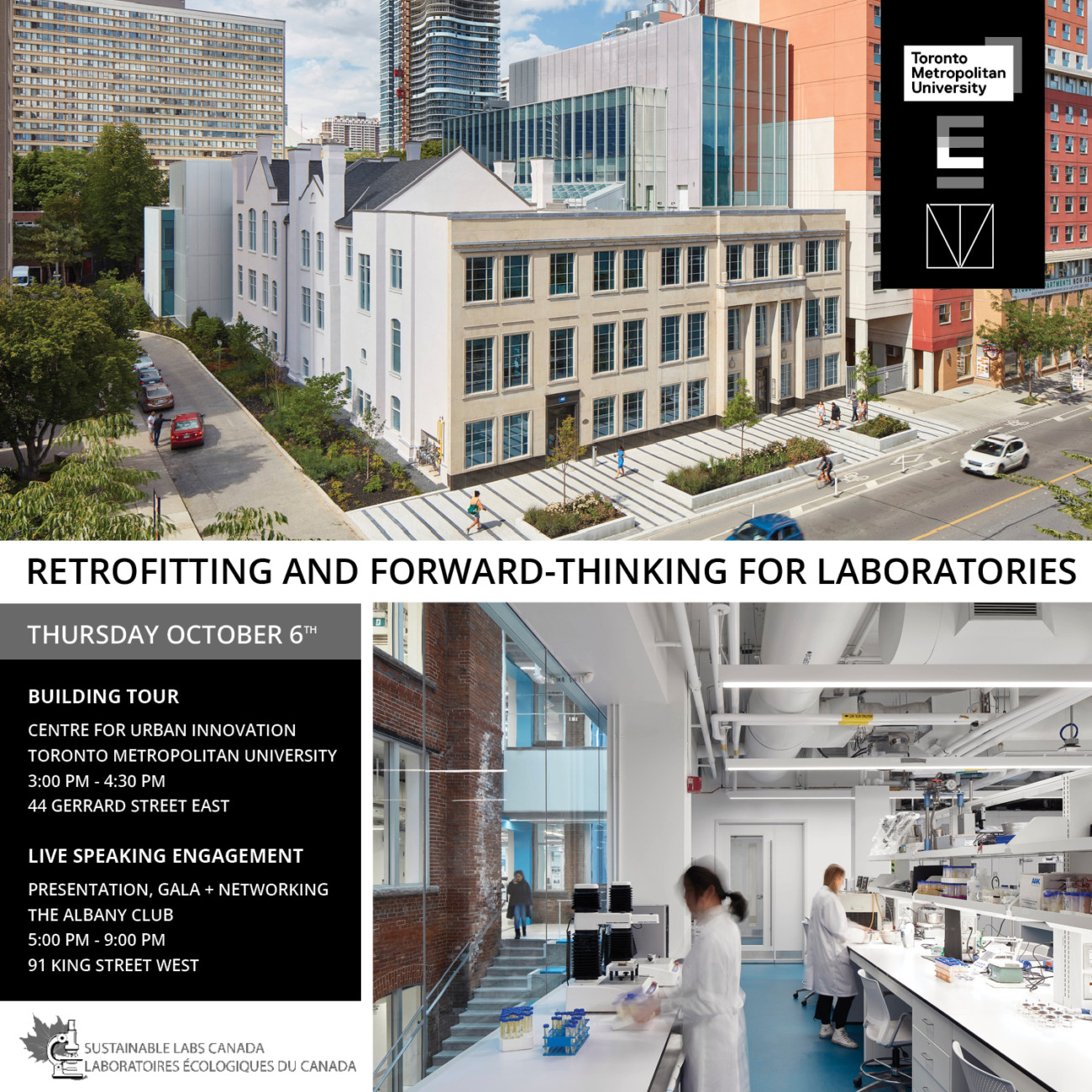The challenges and constraints will be exemplified by a case study of the Centre for Urban Innovation (CUI) at TMU. This will include a guided tour of the facility from 3:00 PM – 4:00 PM, located at 44 Gerrard Street East, and a live presentation, gala, and networking event at the Albany Club between 5:00 PM – 9:00PM, located at 91 King Street West.