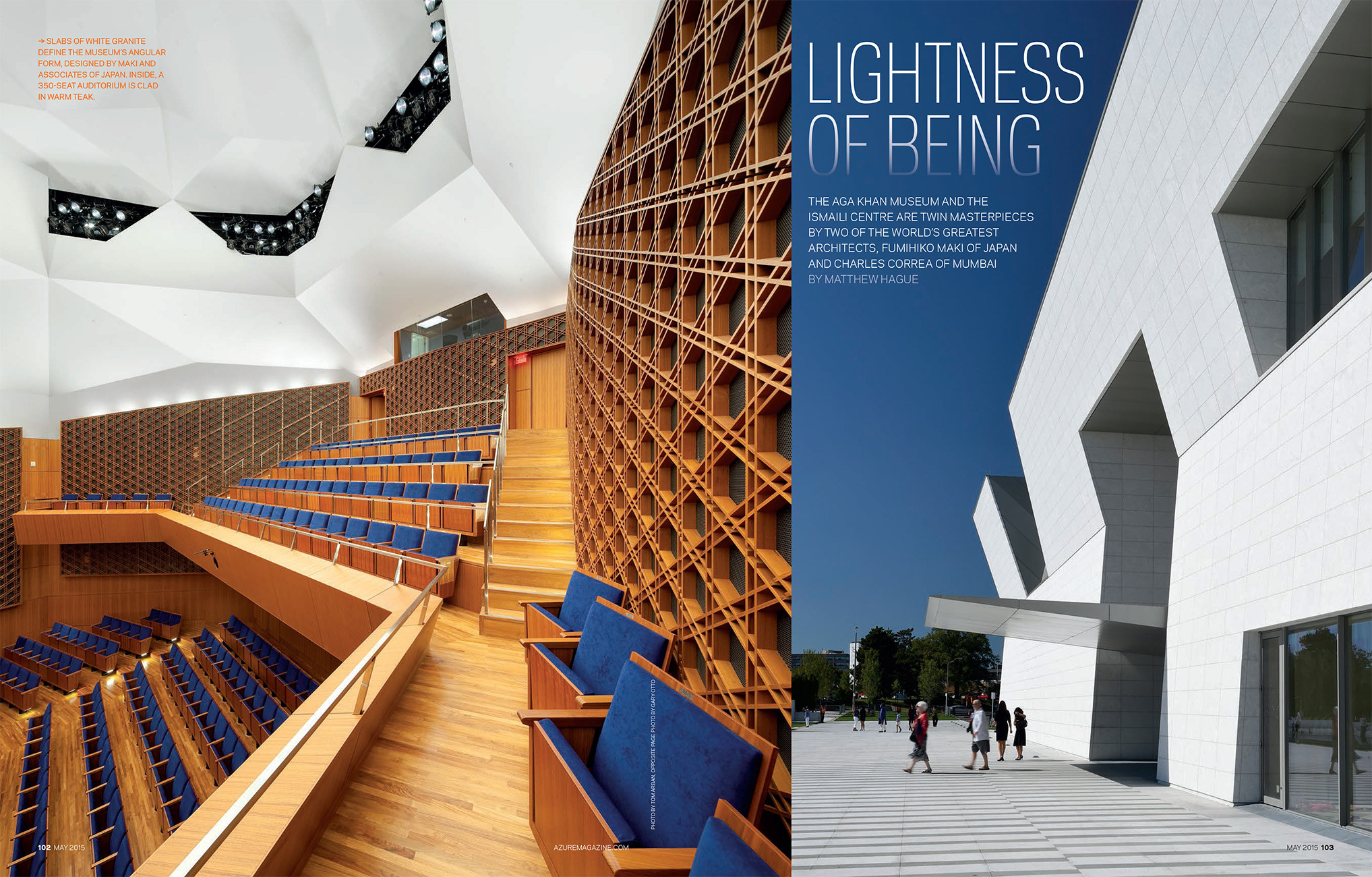 The May 2015 issue of Azure magazine features both the Aga Khan Museum and Ismaili Centre amongst the Toronto’s best projects.