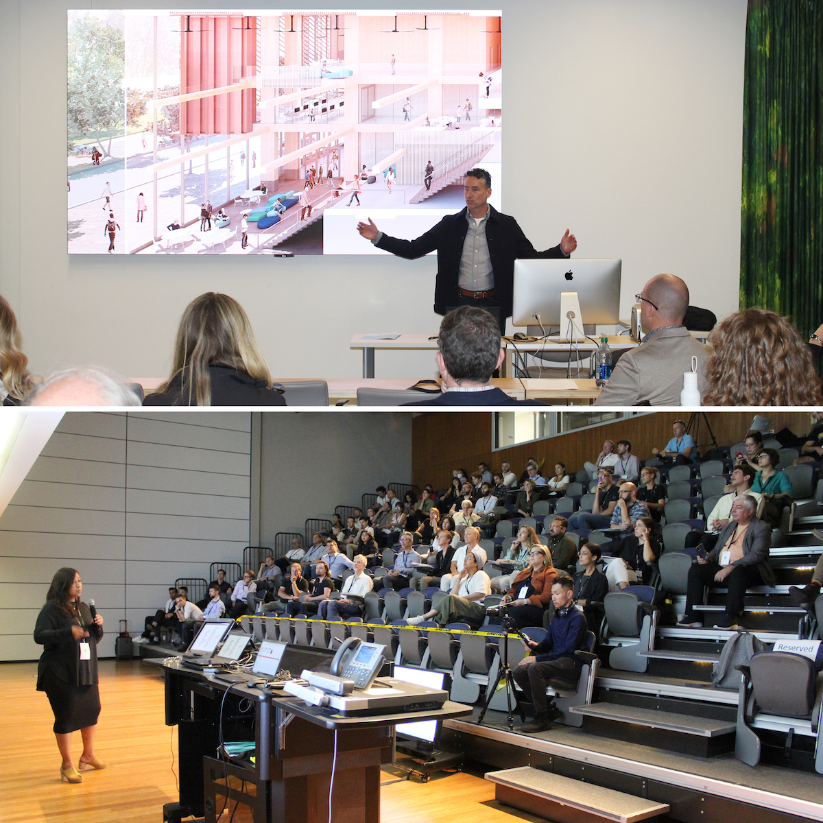 Carol, Partner-in-Charge, and Phil, Job Captain of Limberlost Place (MTA and Acton Ostry Architect’s 10-storey, mass timber, institutional building currently under construction at George Brown College’s Waterfront Campus), is part of Panel 1, which also includes Paul Stevens of ZAS Architects, Mark Gaglione of Ellis Don, and Zenon Radewych of WZMH. Following this discussion, Panel 2 includes Michele Shi of Hasslacher Timber, Carter Mulder of Rothoblaas, and Franco Piva of ErgoDomus.