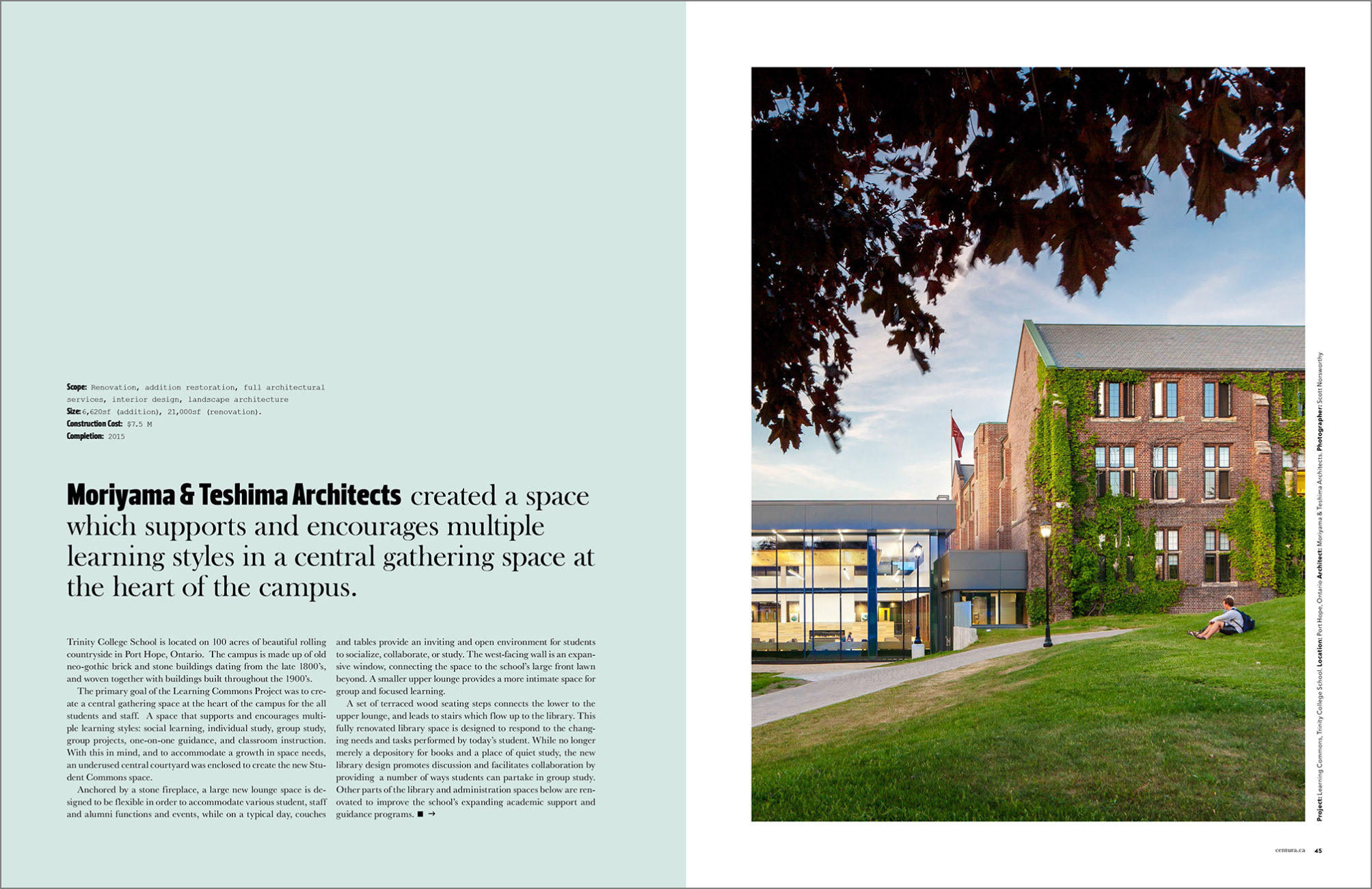 The Fall/Winter issue of Centura Magazine features Moriyama & Teshima Architects’ Trinity College School Learning Commons.