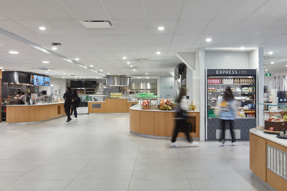 The project involved the renovation of a 2,485 m² meeting area complete with space for food preparation, informal gathering, as well as enriched exterior spaces and a beautified main entranceway to the W.G. Davis Building. These transformations to the second floor establish a modern food court and student gathering areas that go beyond food service. Through this intervention, UTM has been brought toward Council of Ontario Universities Space Guidelines standards for food service space on campus, accommodating the institution’s staggering population growth, and enhancing a vital hub.