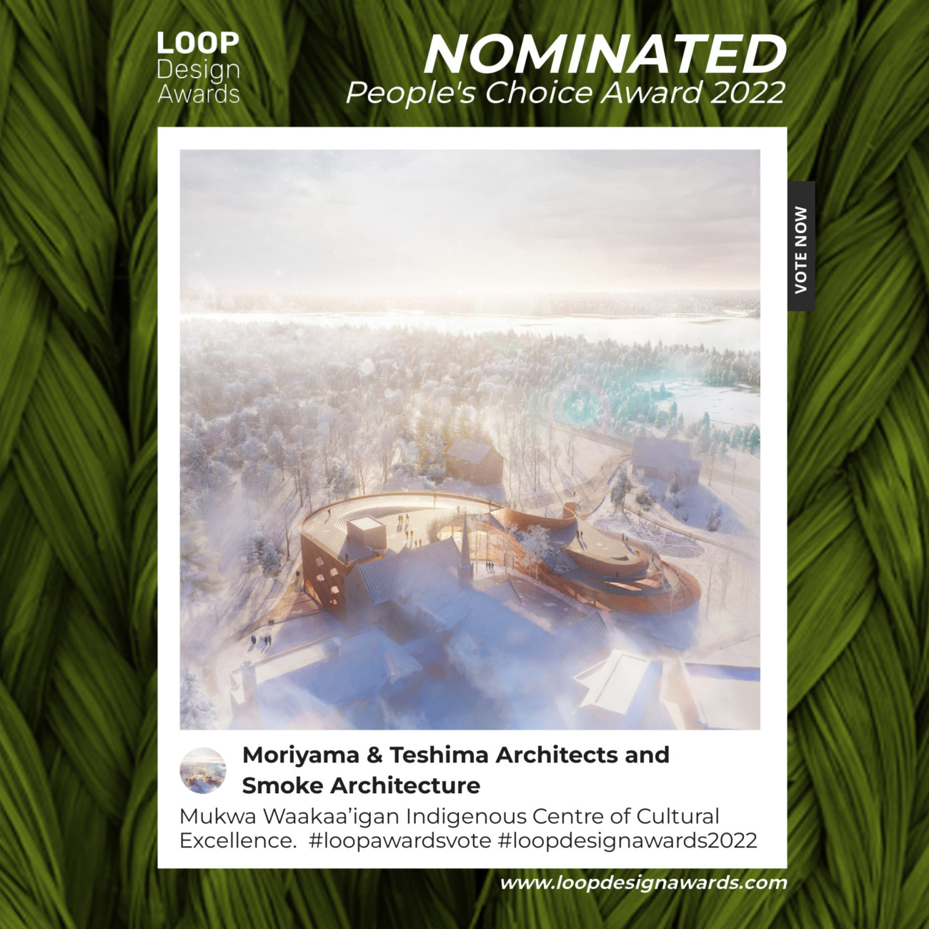Mukwa Waakaa’igan Indigenous Centre of Cultural Excellence at Algoma University has been nominated for a 2022 LOOP Design Award (Concept & Unbuilt Category)! We are asking our network to cast votes in favour of this project in the online People’s Choice competition. You are permitted to vote once every 24 hours between now and September 15th. Voting is free. No sign-up/sign-in required.