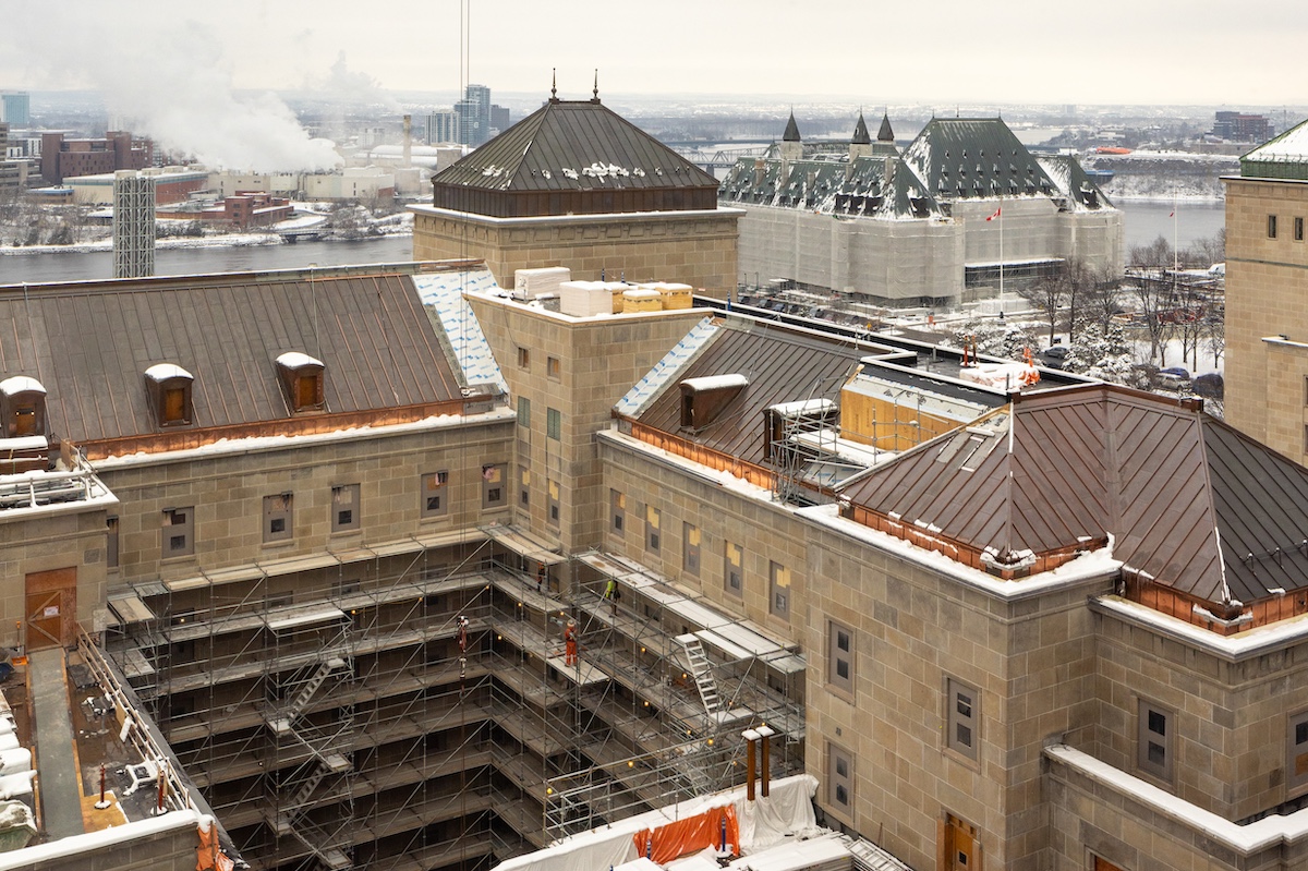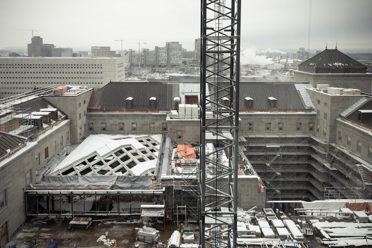 The West Memorial Building Rehabilitation project (pictured) is a major modernization and restoration of a Classified Federal Heritage Building located in the downtown core of Ottawa. The scope of work includes a complete masonry restoration, structural and seismic upgrades throughout, new base building systems, and the infill of two 5-storey central lightwells. The two newly created feature spaces within the building – one serving as the as the new home for the Supreme Court and the Federal Courts, and the other serving as the “Grand Hall”, the focal point of gatherings and events within this historic landmark – will reinvigorate the cores of the WMB.