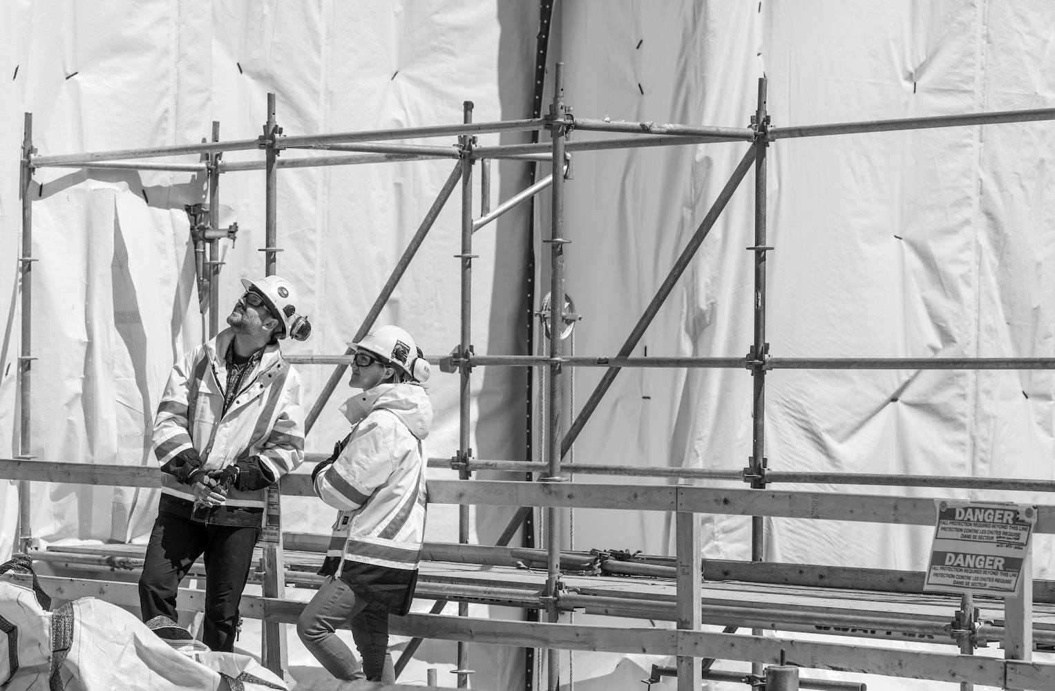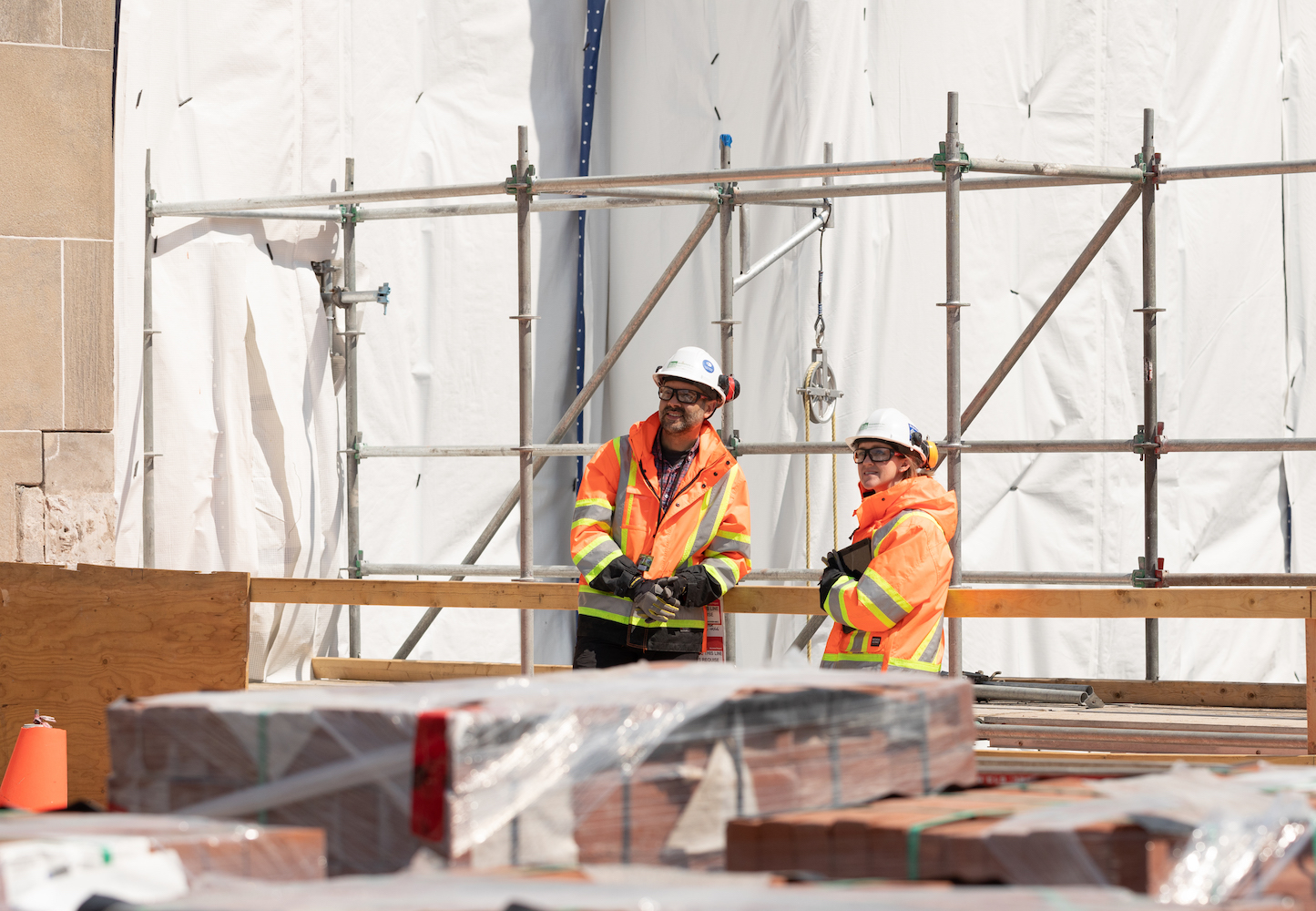 Pictured here are David Stone and Carolyn Gillespie, Associates at Moriyama Teshima Architects, on site at the West Memorial Building in downtown Ottawa – a project currently being completed in joint venture with Kasian Architecture, Interior Design, and Planning.
